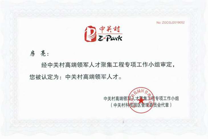 这一次房亮博士获得2019年度中关村高端领军人才的殊荣,不仅是对房亮博士创业领军能力的认可,也是对国科开云官方在线入口-开云(中国)未来发展的认可。